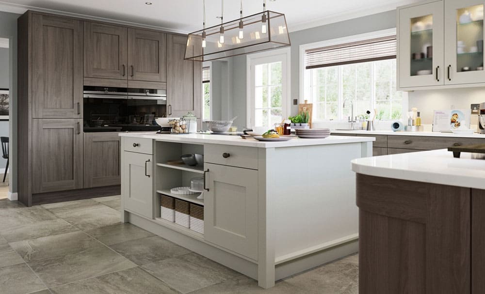 Màu trắng kết hợp cùng màu nâu giúp cho gian bếp sang trọng hơn